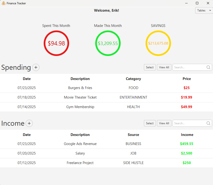 Custom desktop application built to help users track and manage their spending, income, and shared payments, while automatically calculating monthly averages and savings. Featuring visual statistics in a clean and intuitive interface